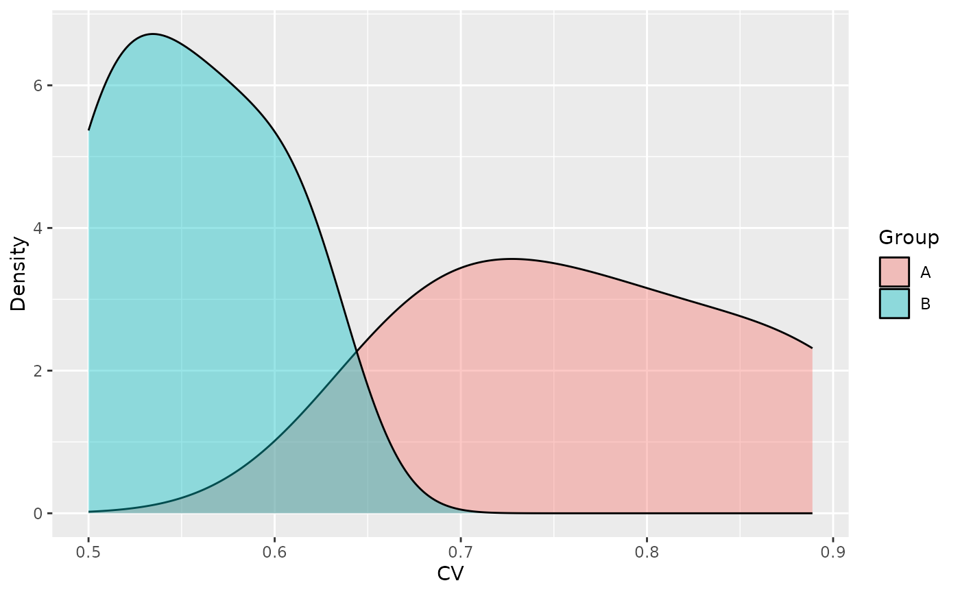 sample_infoor a vector/factor with length equal to the number of samples. When provided, CVs are computed within each group and densities are shown with different fills.